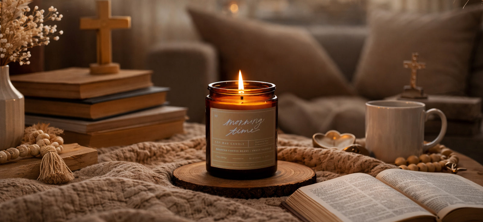 Blessed is She candles are made from 100% soy wax and are paraffin clean. The natural wood wick delivers a soft crackle, adding warmth to your prayer time. Therefore, it sets the perfect tone for rosaries, meditation, or moments of